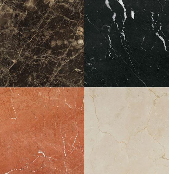 - Marble is a stone known for its elegance and durability, available in a wide range of colors and patterns. It is ideal for countertops, floors and wall coverings, bringing a touch of luxury to any space.